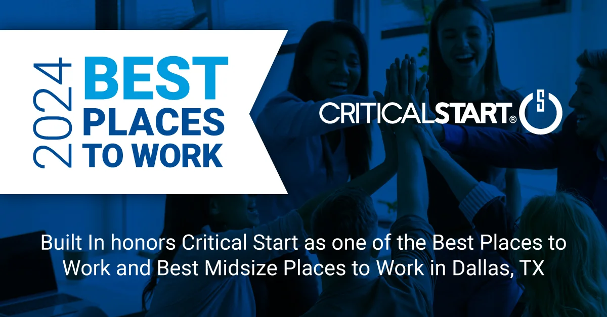 PLANO, TX, January 23, 2024 – Today, Critical Start, a leading provider of Managed Detection and Response (MDR) cybersecurity solutions and pioneer of Managed Cyber Risk Reduction (MCRR), announced it is among the Best Places to Work and Best Midsize Places to Work in Dallas, Texas by Built In’s Best Places to Work Awards. The annual awards program includes companies of all sizes, from startups to those in the enterprise, and honors both remote-first employers as well as companies in large tech markets across the U.S.
