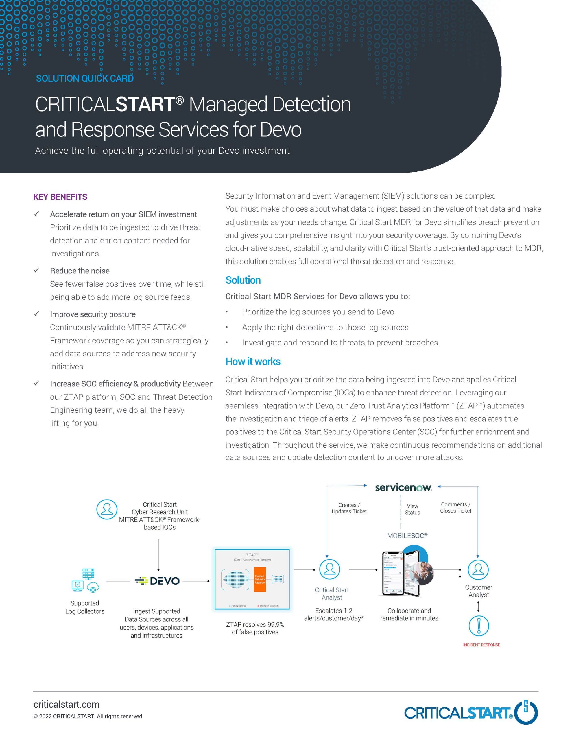 This is a solution quick card for Critical Start Vulnerability Prioritization, which helps engineers and analysts prioritize vulnerabilities based on their potential impact and