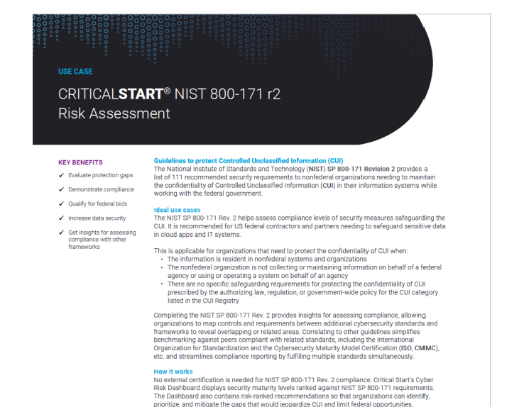 Leverage the NIST SP 800-171 Rev. 2 assessment to assess compliance levels of security measures safeguarding Controlled Unclassified Information (CUI).